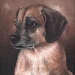 “I commissioned Cy for a pet portrait of a dear friend’s Cleo. A rescue dog, Cleo has captured the hearts of all who know her and I knew that a portrait would be a gift cherished forever.